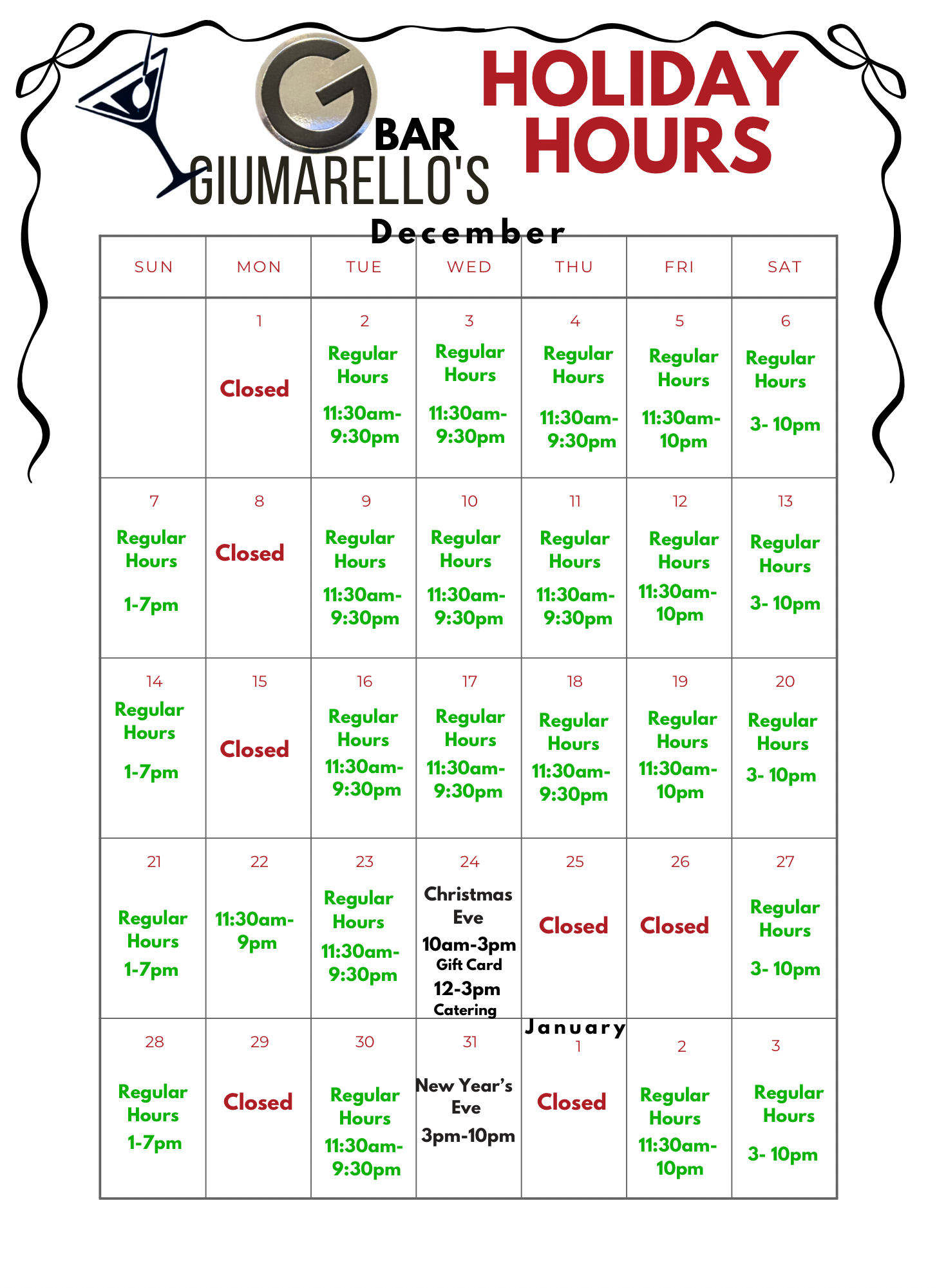 Holiday Hours